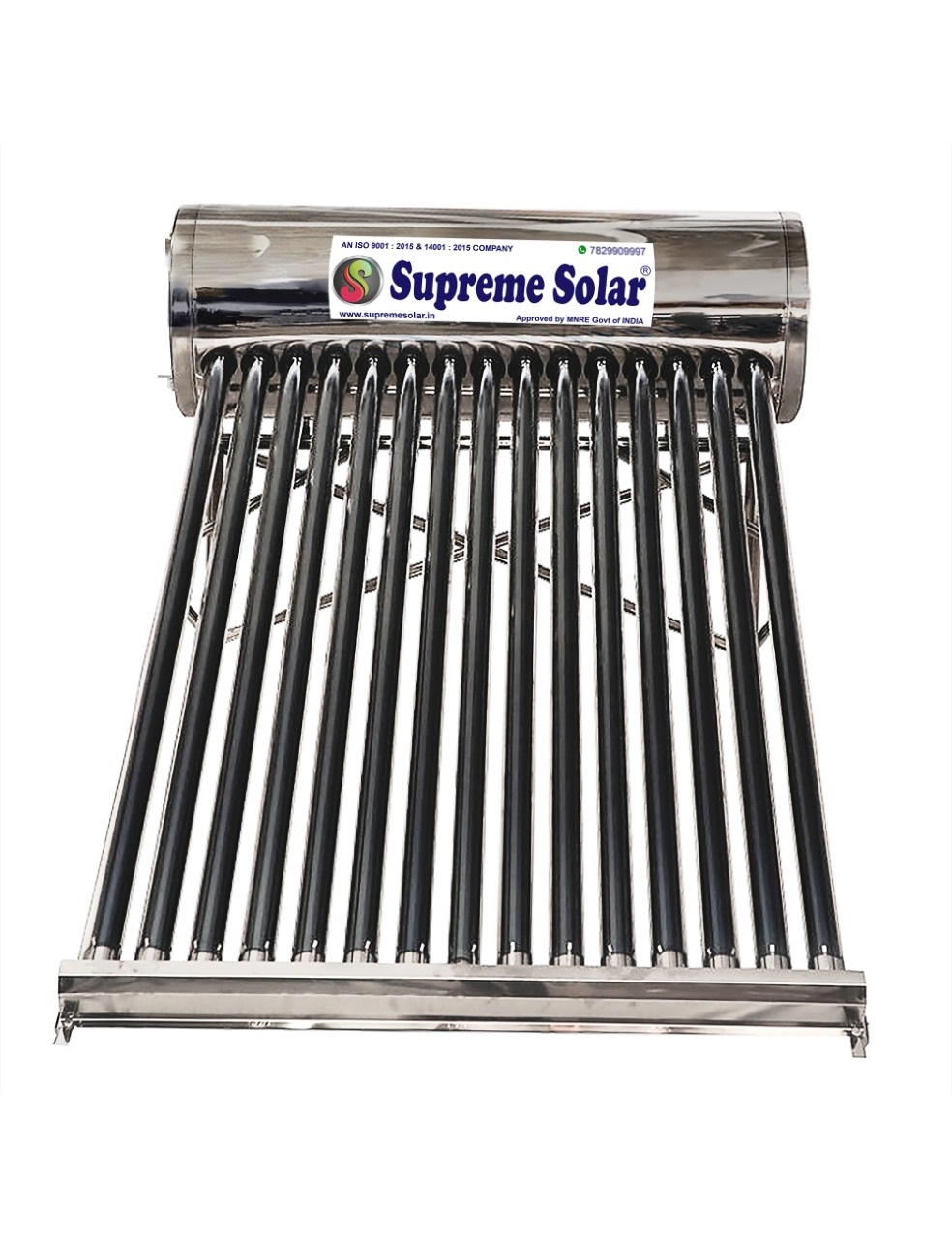Supreme Solar 165 GL Full Steel has a galsslined coated tank which is a special coating that prevents rusting of tanks due to harsh hard water conditions. We at supreme solar also manufacture solar tanks with outer body stainless steel finish.
